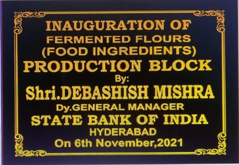 Inauguration of Fermented Flours Production Block by Dy. General Manager of SBI, Shri. Debashish Mishra as guest of honor, CV. Raghuram (Regional Manager-SBI) and chief guest- Shri. Suresh Babu Ramayan, Vice President & Cluster Head of HDFC bank on 6th No