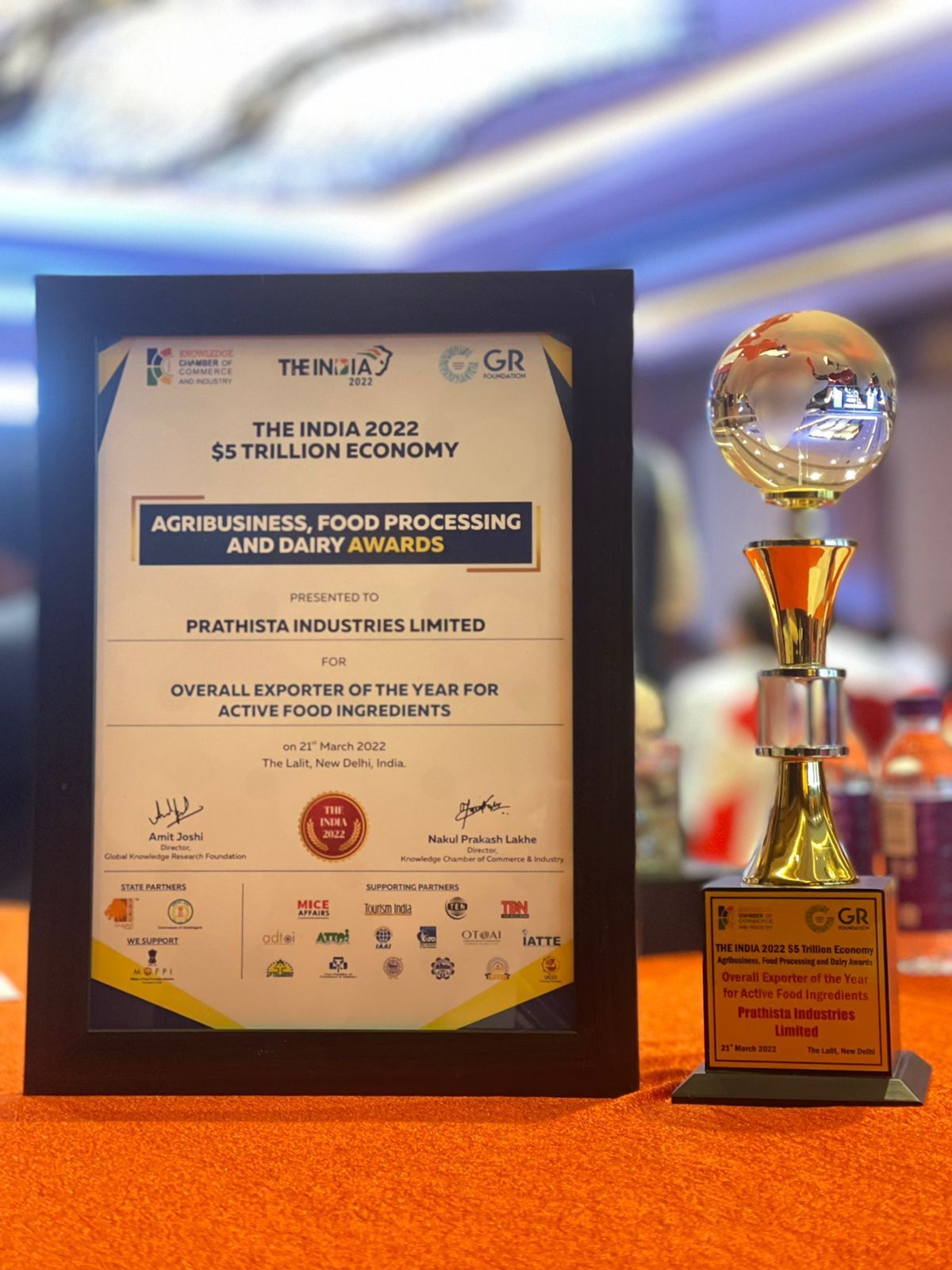 Overall Exporter of the Year Award for Active Food Ingredients. Received on 21st March, 2022