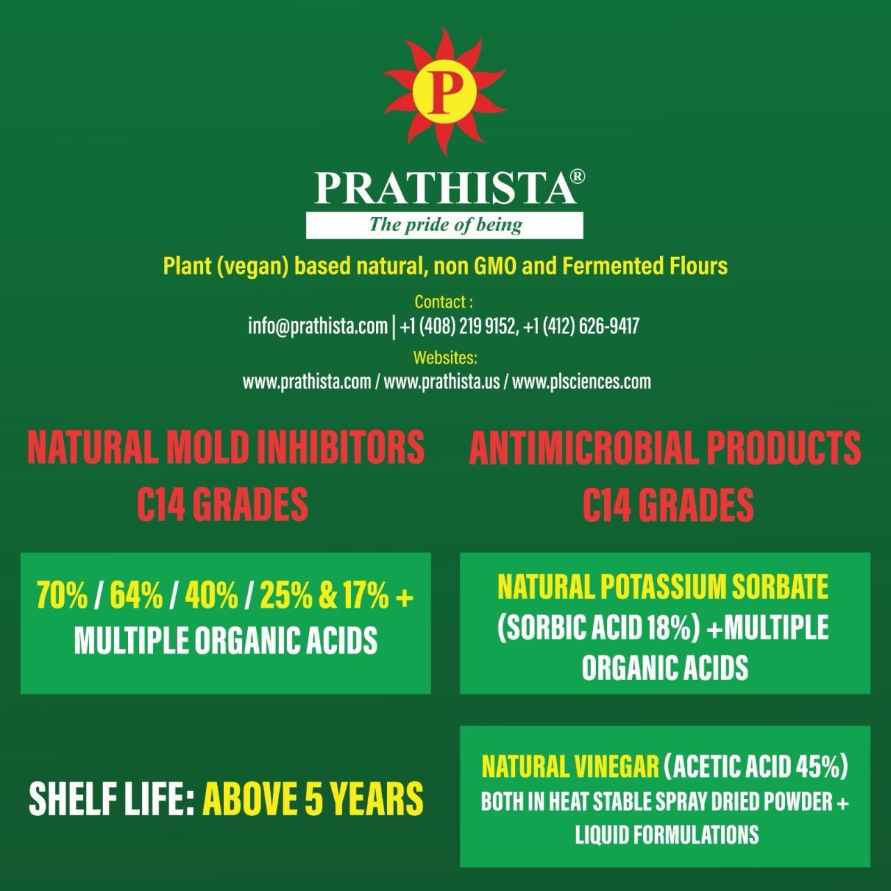 Prathista Industries Limited is globally known company with many patents and introduced natural Mold inhibitor and anti-microbial products to reduce food waste and save health of human kind globally to replace chemical solutions which are being used in food products since decades.