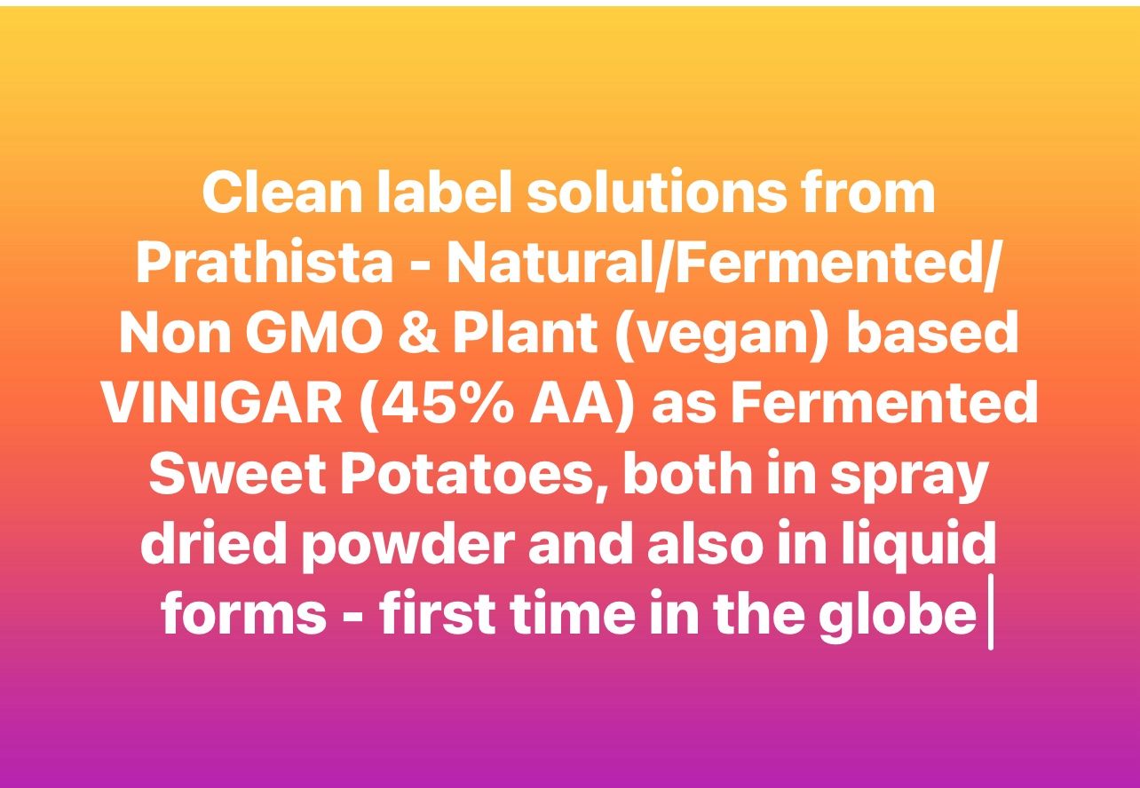 Prathista Industries Limited innovative products are well accepted as prathista has range of natural and clean label ingredients (vegan) and eye catching products are natural Mold inhibitors of various ranges and Natural Vinegar of 45% both in powder / liquid form