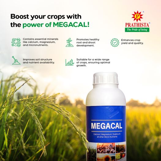 Revitalize your crops with Prathista MEGACAL! Our unique formulation, packed with calcium, magnesium, and essential micronutrients, ensures healthy growth and bountiful yields. Suitable for a variety of crops, MEGACAL is your go-to solution for better far