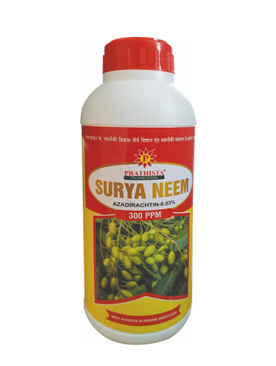 Composition: Neem seed kernel extract solvent methanol containing min.0.15% or 0.03% Azadirachtin@60%, Emulsifier @ 5% and Treated Neem Oil@35%. Available in 300 ppm & 1500 ppm.